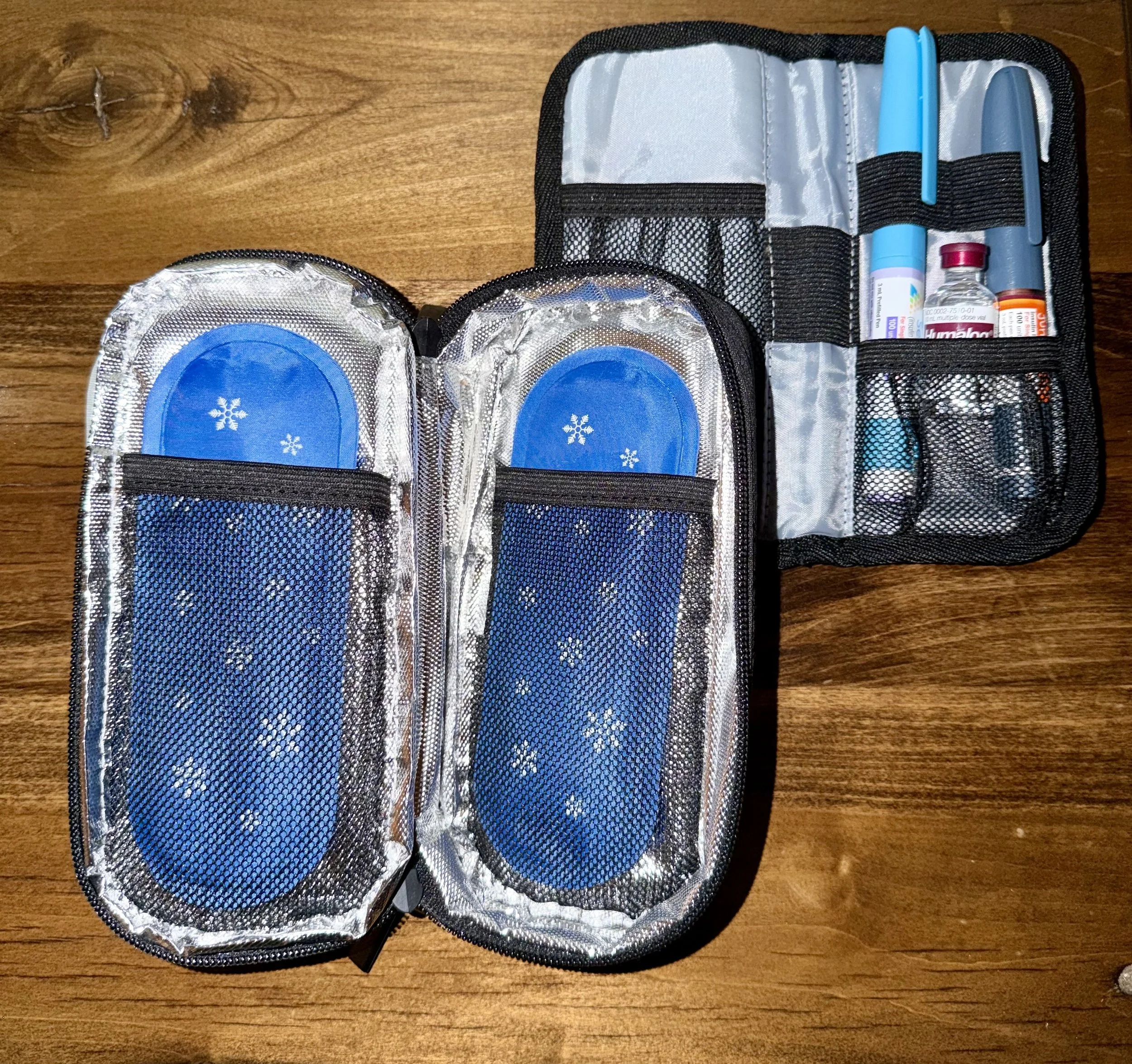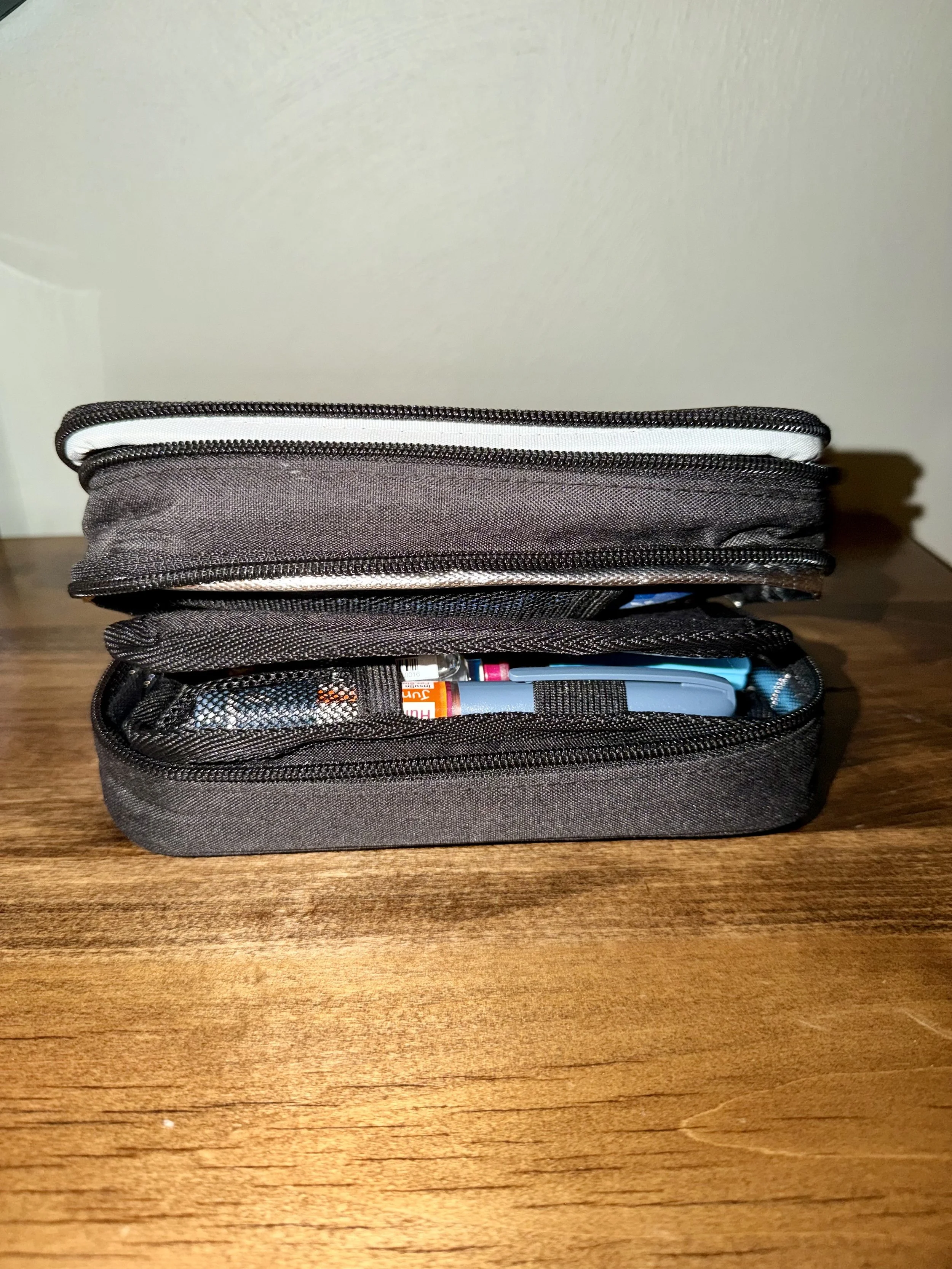 I found a small travel case—about the size of a pencil pouch—with two freezer packs inside. It keeps insulin pens and vials cool while traveling. Total game changer! You can find it here.