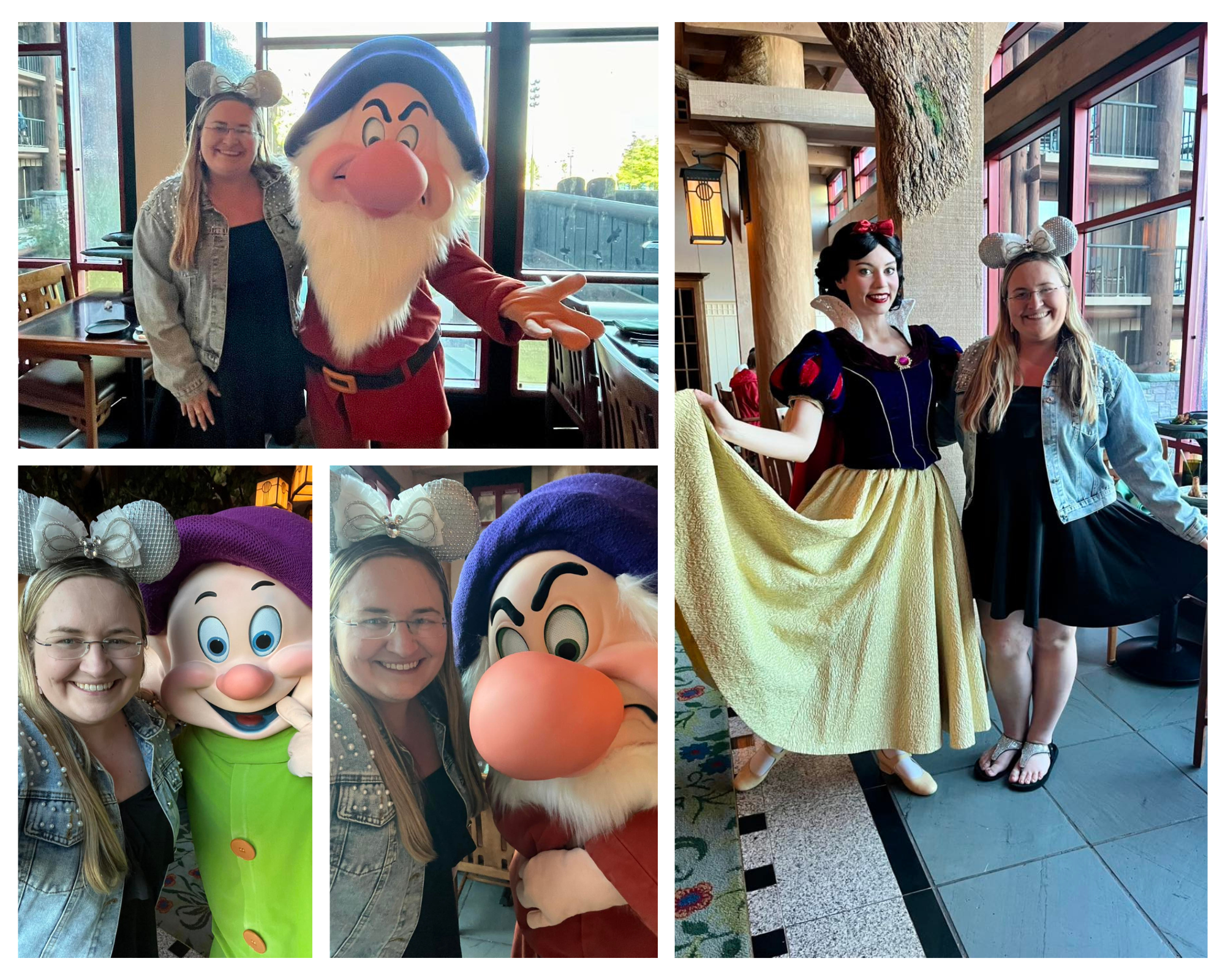 Interactions with Dopey, Grumpy and Snow White were great. Each one came by my table for photos multiple times, danced through the restaurant, and overall, kept everyone in the dining room very entertained. While you are enjoying the character interactions and your storybook meal, there will be a PLOT TWIST like in any classic Disney fairytale: the Evil Queen arrives!