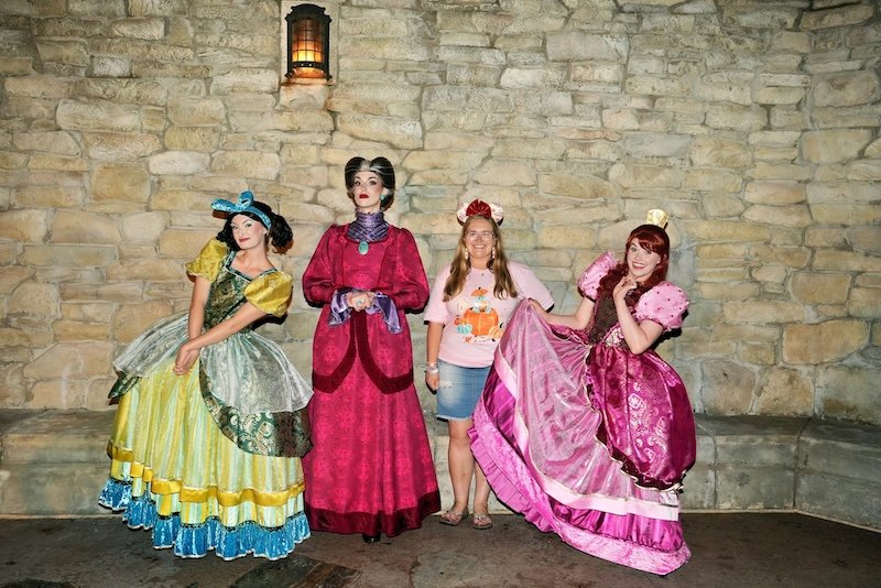 Again, I love the way the villains are incorporated into this party. They are not just in the parades and shows, but they are also out and about for you to meet! Last year, my favorite meet and greet was with Lady Tremaine with the Evil Stepsisters! They gave each guest lots of time, took multiple photos, and provided a really fun interaction. Villains are also found on some of the Trick-or-Treat trails too! We found the Evil Queen standing in front of Snow White’s portrait and Maleficent standing in front of Princess Aurora’s portrait inside at the Princess Fairytale Hall.